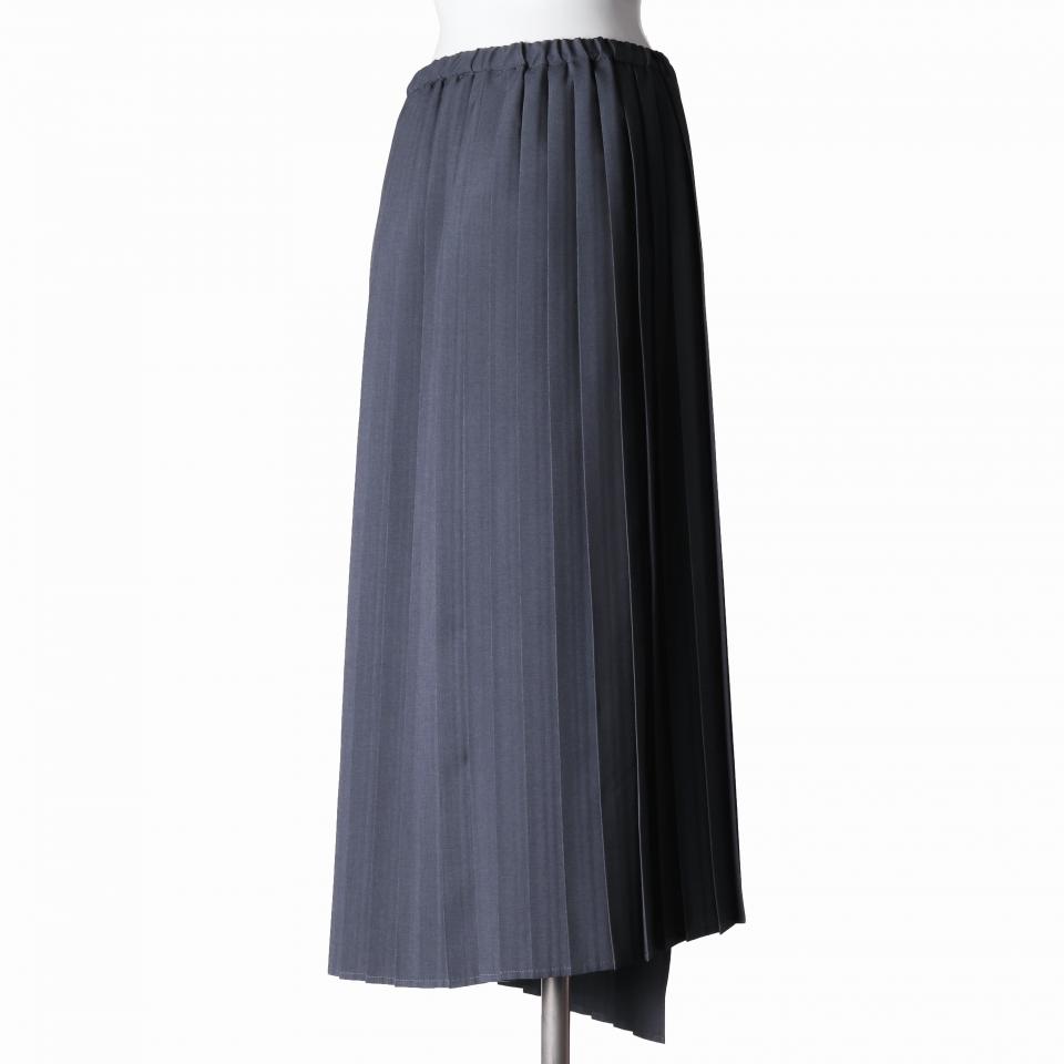 MIDIUMISOLID for Ladies プリーツアシンメトリーラップスカート CHARCOAL GRAY