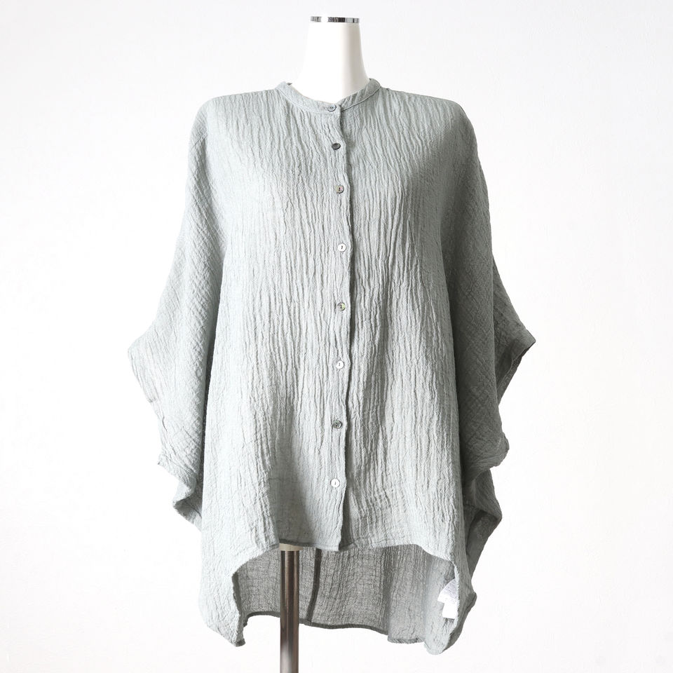 - dobby stand collar gather neck wide shirt OFF WHITE