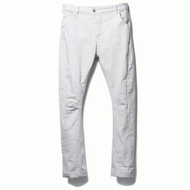 定番素材、ムラカツラギ組織のハイパワーストレッチに最新加工のボタニカル染めを施したアイテム。ボタニカル染めとは、天然植物染料で独特のムラ感のある表情が出るのが特徴で、穿き込んだ際の経年変化が楽しめる技法。